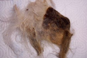 neues Fell gleichermaßen gekürzt. Alte Haarwurzeln blieben im Fell und